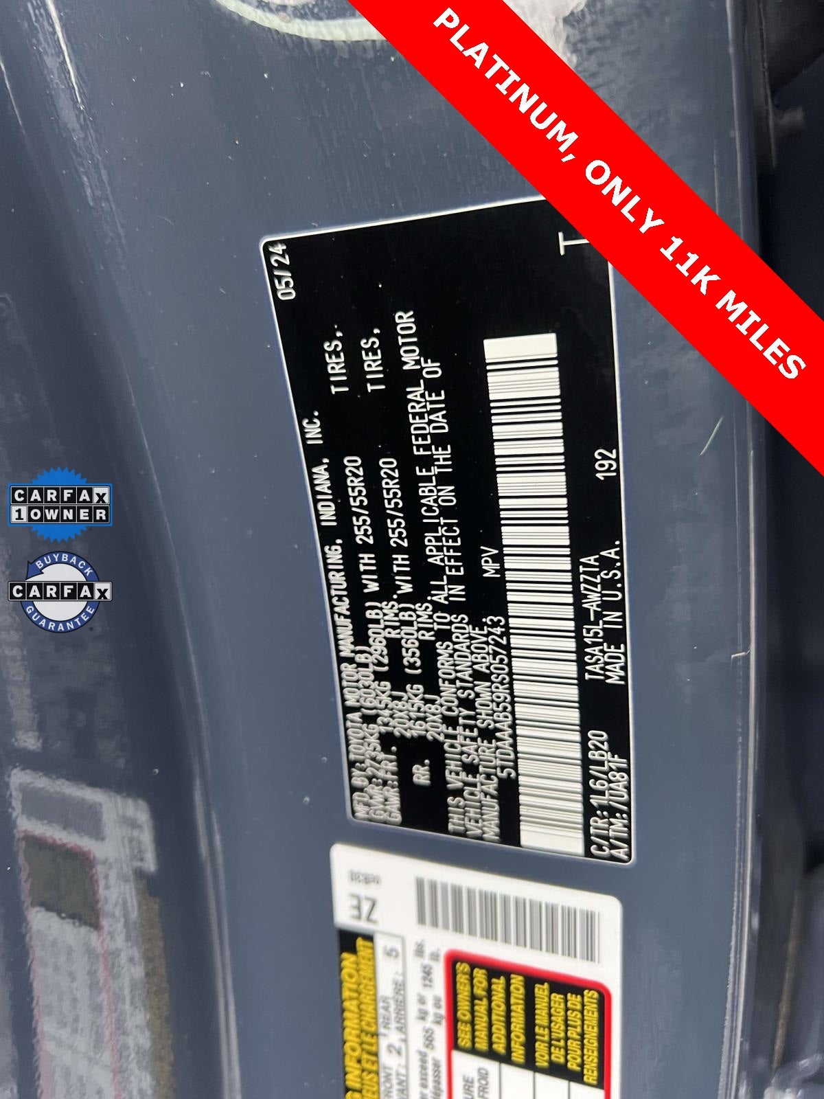Subject to the primary lender's approval. All prices exclude tax, title, dealer fee of $695, tags, license & DMV. Vehicles are sold cosmetically as is. Not all cars are certified where as many do pass the certification process, the customer does have the right to add an optional extended service agreement. 2024 Toyota Grand Highlander Platinum 7 PASSENGER, CLEAN VEHICLE HISTORY...NO ACCIDENTS, Leather Seats, Moonroof, ONE OWNER, PASSES STATE INSPECTION, REMAINDER OF FACTORY WARRANTY, SERVICE RECORDS AVAILABLE, Alloy Wheels, Ambient Light Package, Audio Package, Backup Camera, Bluetooth®, Captains Chair, Climate Package, Convenience Light Package, Convenience Plus Package, Courtesy Lights Illum Package, Customer Preferred Package, Heat Package, License Plate Front Mount Package, Light Package, Memory Package, Multimedia Package, Popular Equipment Package, Power Mirror Package, Power Package, Preferred Accessory Package, Preferred Equipment Package, Preferred Package, Premium Package, Premium Sound Package, Premium Wheels, Safety Package, Sound Package, Sunroof/Moonroof, Grand Highlander Platinum, 4D Sport Utility, 2.4L 4-Cylinder, 8-Speed Automatic, AWD, Storm Cloud, Black Leather, 11 Speakers, 3.33 Axle Ratio, 3rd row seats: split-bench, 4-Wheel Disc Brakes, ABS brakes, Air Conditioning, All Weather Floor Liners/Cargo Tray (TMS), AM/FM radio: SiriusXM, Apple CarPlay/Android Auto, Auto High-beam Headlights, Auto-dimming Rear-View mirror, Automatic temperature control, Brake assist, Bumpers: body-color, Delay-off headlights, Driver door bin, Driver vanity mirror, Dual front impact airbags, Dual front side impact airbags, Electronic Stability Control, Emergency communication system: Safety Connect (up to 10-year trial subscription), Exterior Parking Camera Rear, Four wheel independent suspension, Front anti-roll bar, Front Bucket Seats, Front Center Armrest, Front dual zone A/C, Front fog lights, Front reading lights, Fully automatic headlights, Garage door transmitter: HomeLink, Heads-Up Display, Heated & Ventilated Front Seats w/Memory, Heated door mirrors, Heated front seats, Heated rear seats, Heated steering wheel, Illuminated entry, Knee airbag, Leather Seat Trim, Leather Shift Knob, Leather steering wheel, Low tire pressure warning, Memory seat, Navigation system: Drive Connect Cloud Navigation (1-year trial subscription), Occupant sensing airbag, Outside temperature display, Overhead airbag, Overhead console, Panic alarm, Passenger door bin, Passenger vanity mirror, Power door mirrors, Power driver seat, Power Liftgate, Power moonroof, Power passenger seat, Power steering, Power windows, Radio: 12.3 Toyota Audio Multimedia w/JBL Premium, Rain sensing wipers, Rear air conditioning, Rear anti-roll bar, Rear reading lights, Rear window defroster, Rear window wiper, Reclining 3rd row seat, Remote keyless entry, Security system, Speed control, Speed-sensing steering, Split folding rear seat, Spoiler, Steering wheel mounted audio controls, Tachometer, Telescoping steering wheel, Tilt steering wheel, Traction control, Trip computer, Turn signal indicator mirrors, Variably intermittent wipers, Ventilated rear seats, Wheels: 20 Clad Alloy. Certified. AWD 8-Speed Automatic 2.4L 4-Cylinder Recent Arrival! Odometer is 8739 miles below market average! 20/26 City/Highway MPG Toyota Gold Certified Details: * Transferable Warranty * Warranty Deductible: $0 * Roadside Assistance for 7 Year / 100,000 Mile. Standard New-Car Financing Rates Available. Warranty honored at over 1,400 Toyota dealers in the continental U.S. & Canada. Trade-ins accepted. Trouble-free handling of your transaction, including DMV paperwork * Vehicle History * Roadside Assistance * Powertrain Limited Warranty: 84 Month/100,000 Mile (whichever comes first) from TCUV purchase date * Limited Warranty: 12 Month/12,000 Mile Limited Comprehensive Warranty: 12 Month/12,000 Mile (whichever comes first) from certified